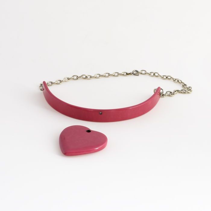 Roze hartvormige hanger van kunststof met bijbehoren...