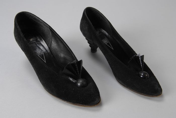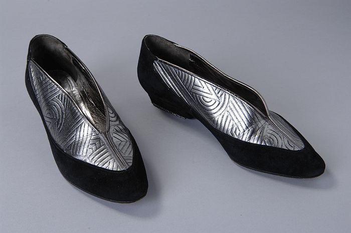 Pumps van zwart suède en zilverleer met klein hakje,...