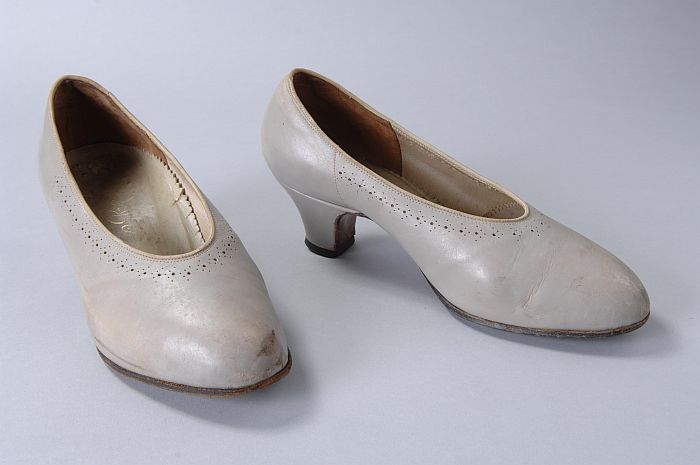 Witte leren bruidsmeisjesschoenen met klein louishak...