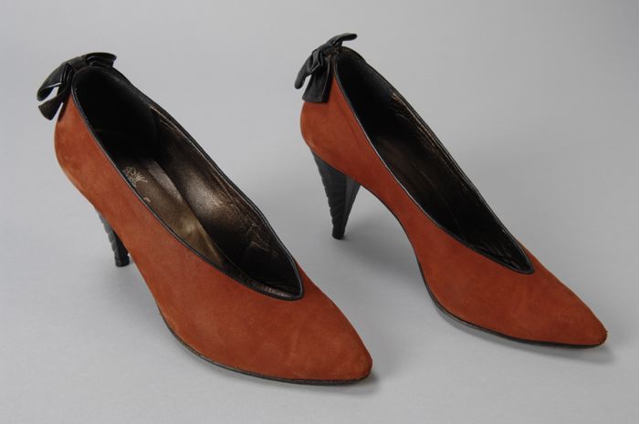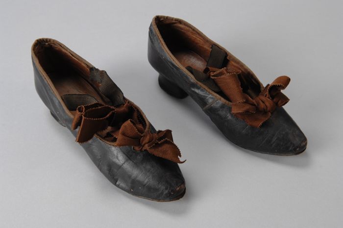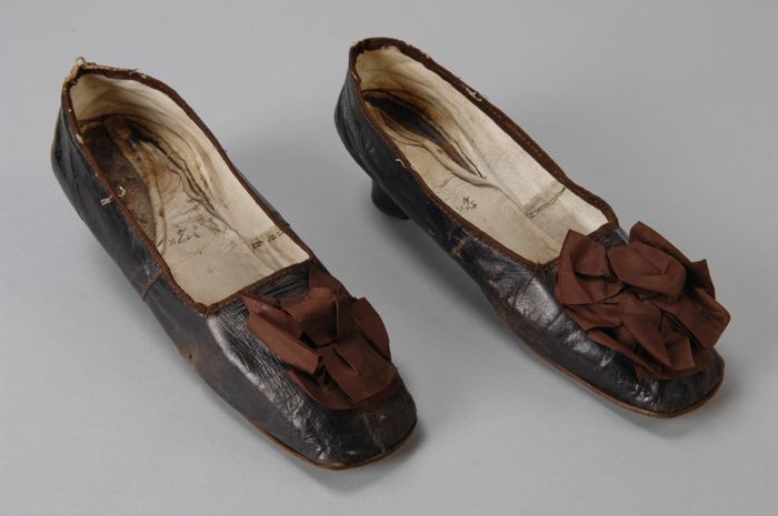 Auberginekleurige damesschoen met bruine zijden stri...
