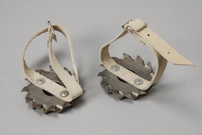 Koperkleurige broche, zweep, met hoefijzer waarin si...