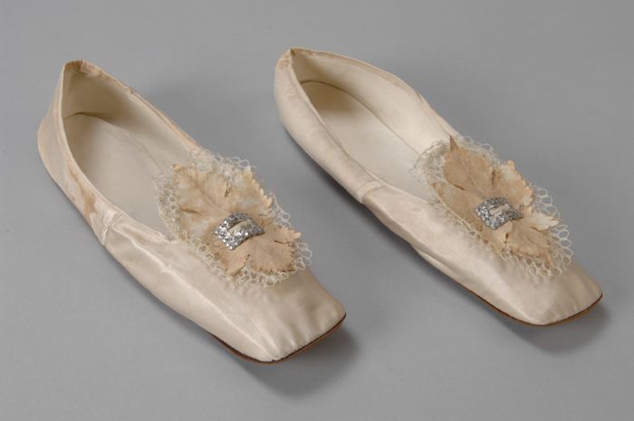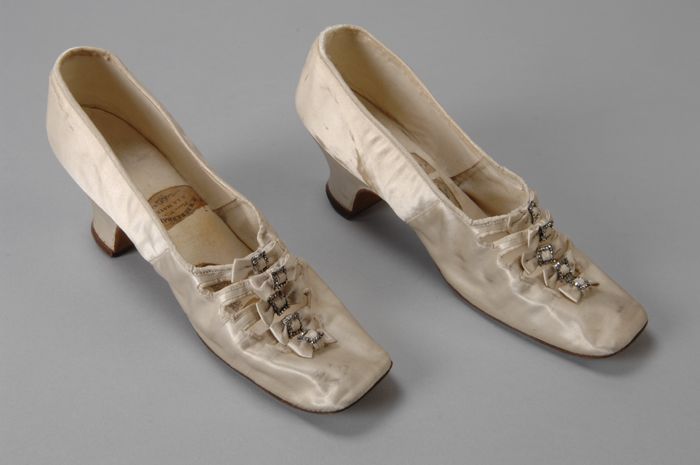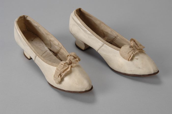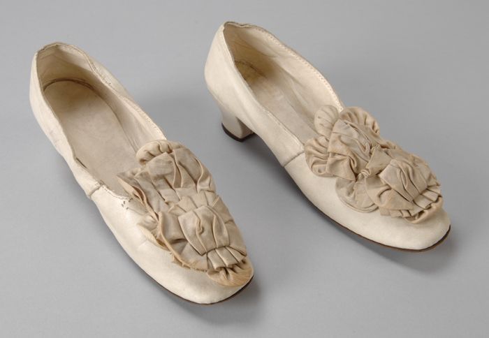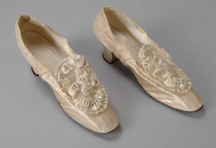 Roomwitte satijnen damesschoenen met grote geplooide...