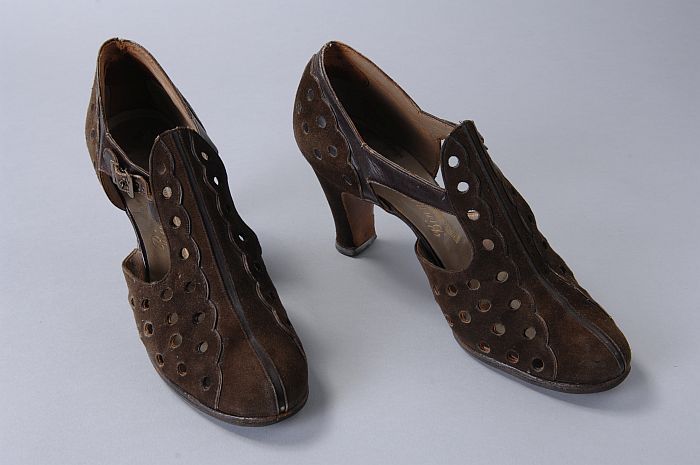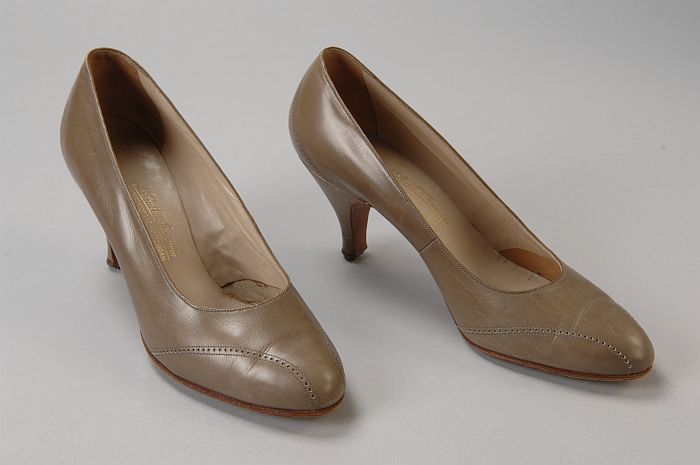 Grijze leren pumps met gaatjesdecoratie