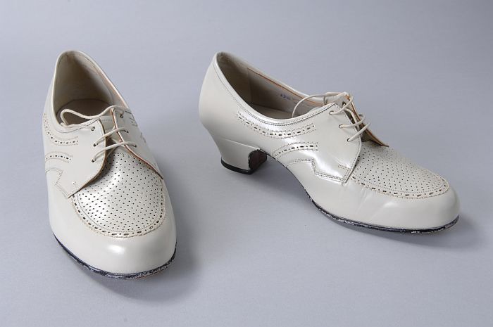 Witte leren bruidsschoenen met grote satijnen strik ...