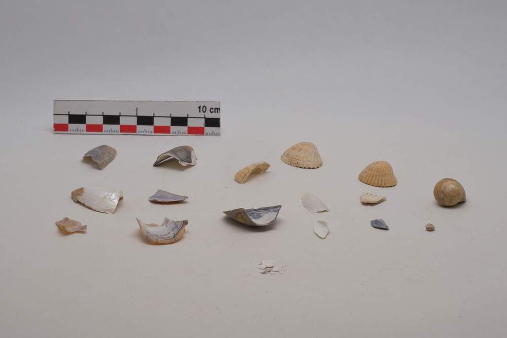 Fragmenten, schelp/ijzer/steengoed/aardewerk/glas/ko...