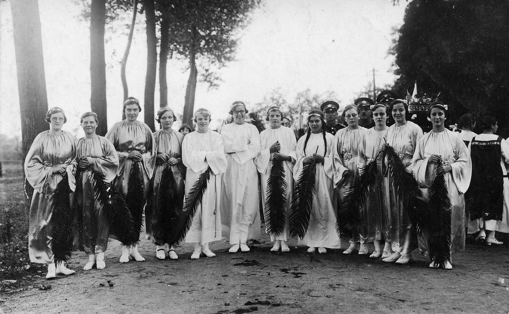 Een groep deelnemers aan de Heilig Hartprocessie en ...