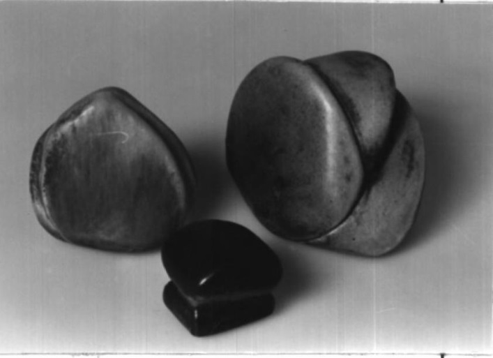 3 Objecten in de vorm van kiezelsteen, overheersend ...