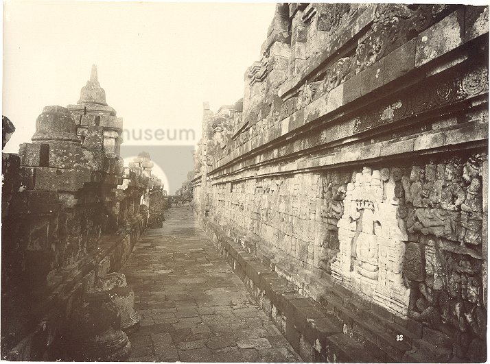 Gezicht op de Borobudur, Java, Indonesië (1880-1900)