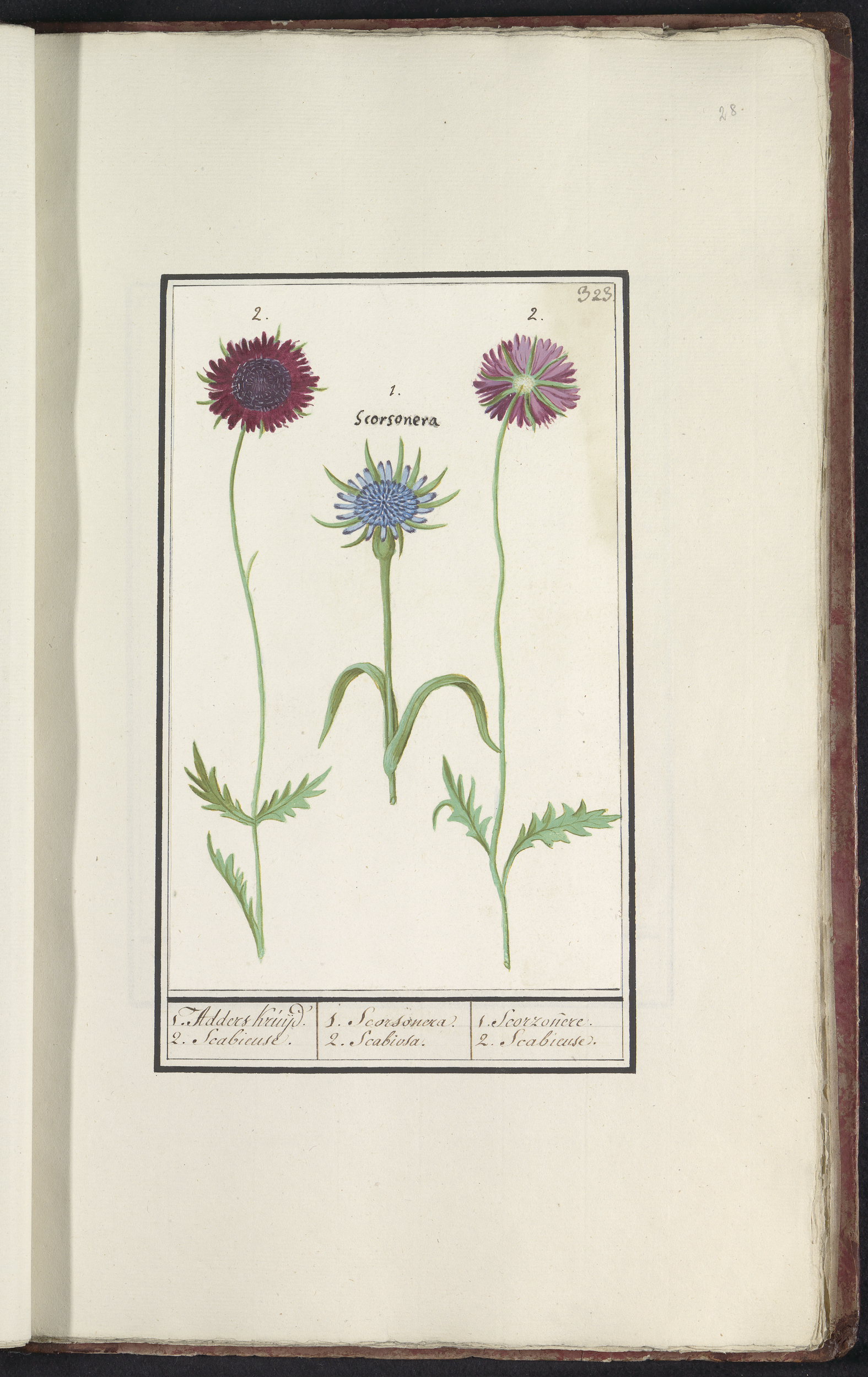Paarse morgenster (Tragopogon porrifolius) en scabiosa