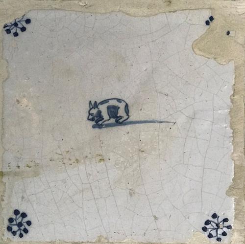 Tegel van aardewerk met tinglazuur voorstellende bok...