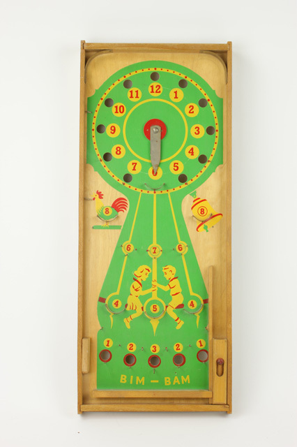 Knikkerspel of trekbiljart met afbeeldingen van kind...