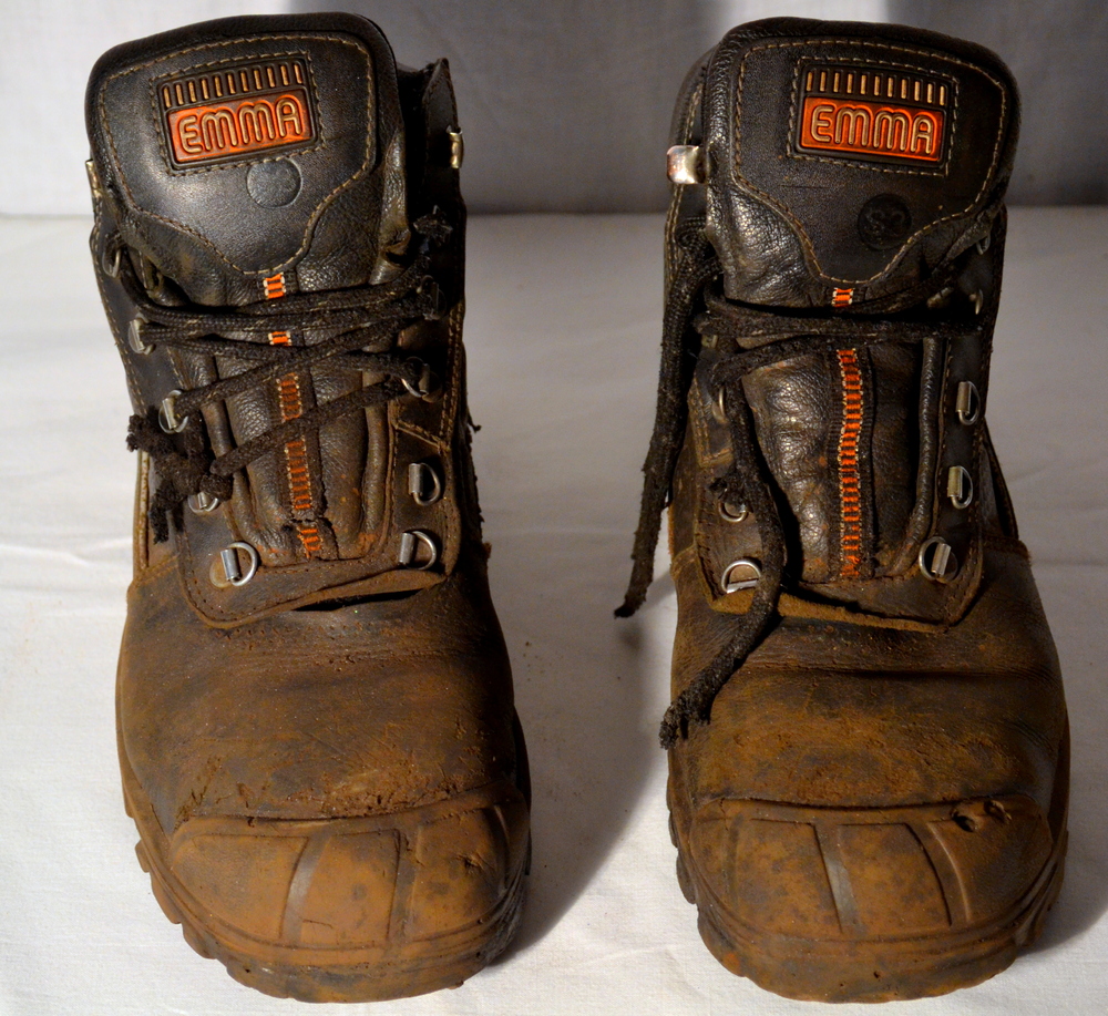 Een paar werkschoenen van rubber en leer van Scheeps...