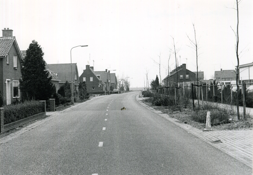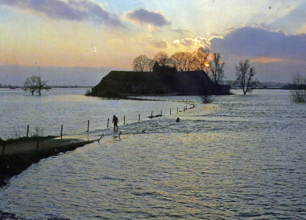Zwart-wit foto van hoogwater bij de Keiendijk in Tol...
