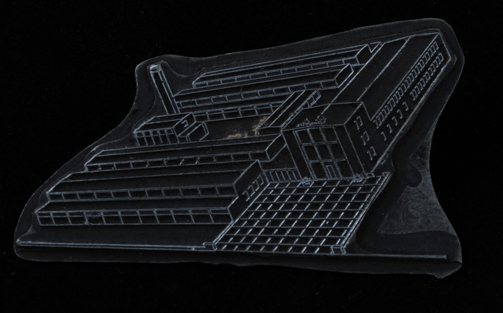 Drukplaat van zink voorstellende de Gimbornfabriek t...