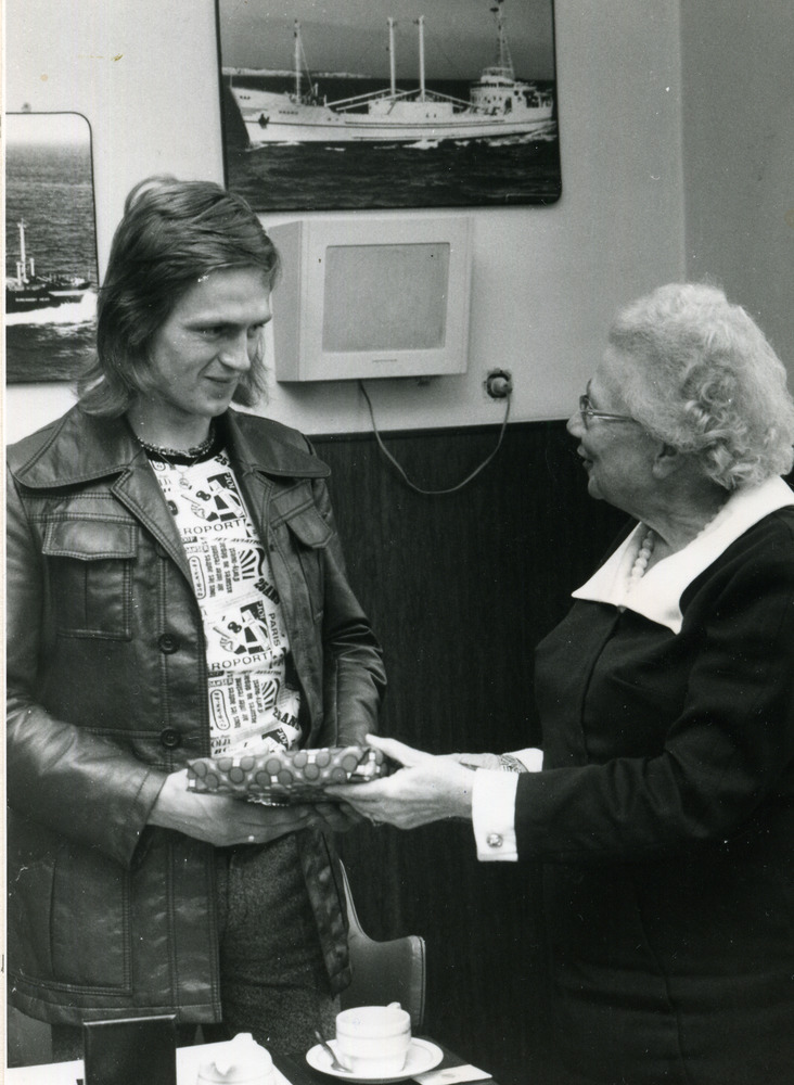 Zwart-wit foto van de uitreiking van een prijs bij D...