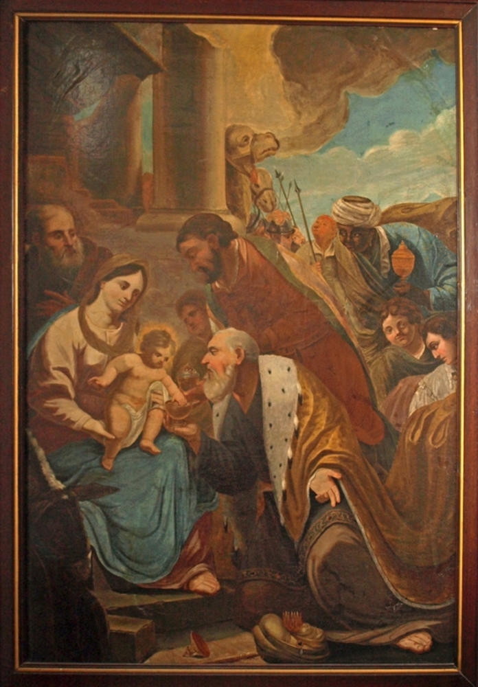 Schilderij olieverf op hout voorstellende de aanbidd...