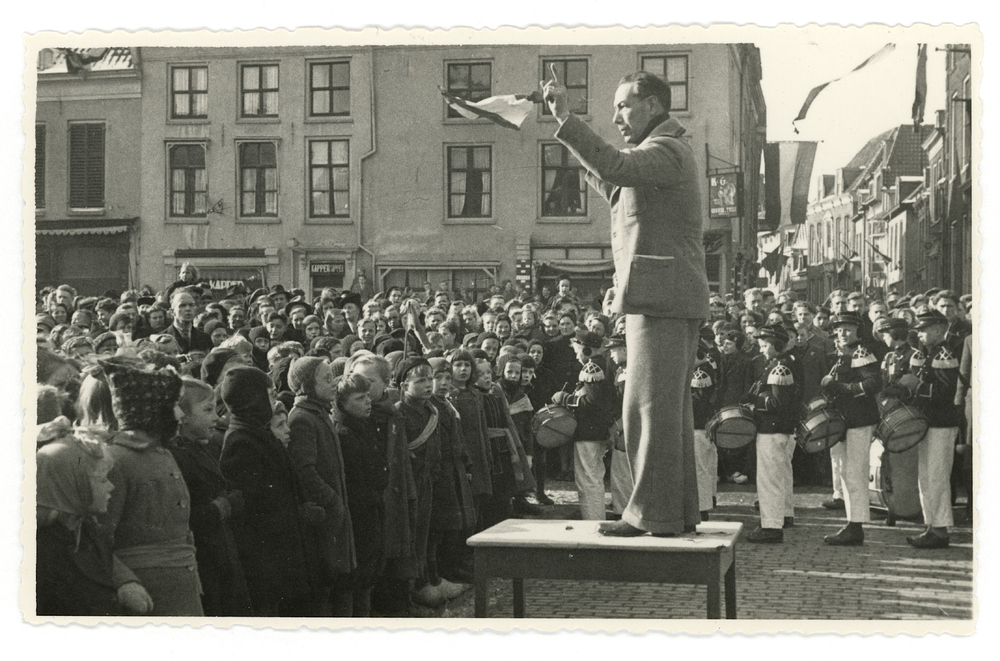 Prentbriefkaart voorstellende een aubade op de Markt...
