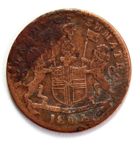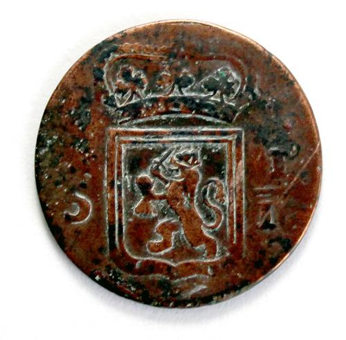 Koperen Nederlands Indische betaalmunt, 1/5 stuiver