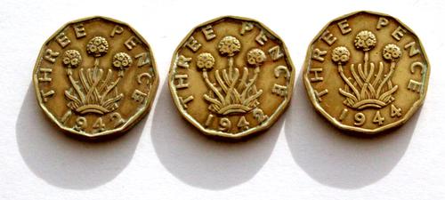 Zinken Belgische betaalmunten, 10 C, 1942, 1944, 1945