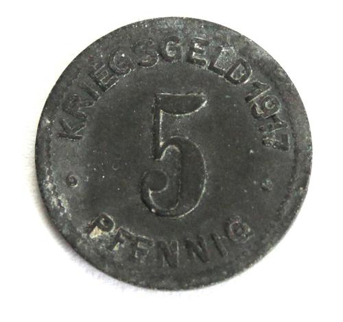Zinken betaalmunt, Duitsland 5 Pfennig Kriegsgeld. 1...