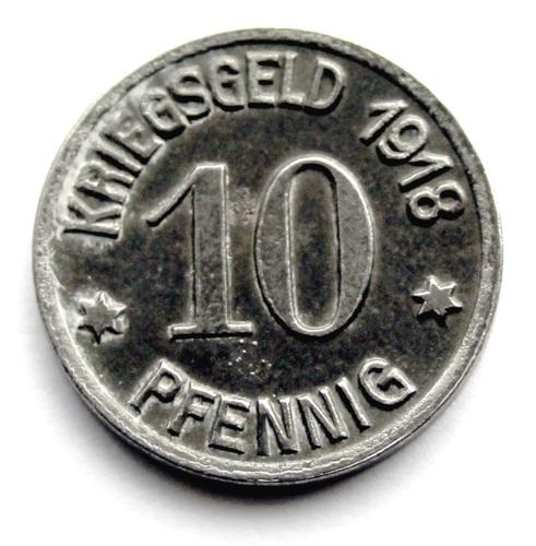 Zinken betaalmunten, Duitsland 10 Pfennig Kriegsgeld...