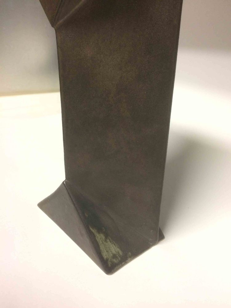 Abstract bronze sculpture upon a blackgranite abstra...