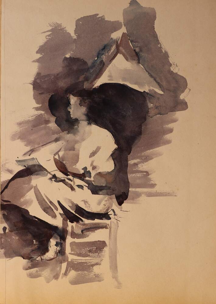 Therese Kassin schildert villa Resimari in het buurt...