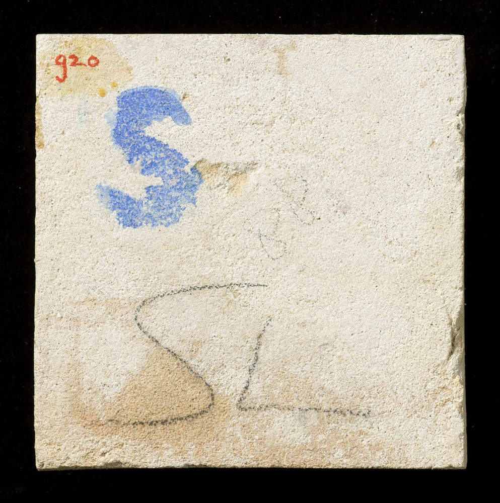 Tegel van keramiek met tinglazuur, voorstellende: wa...
