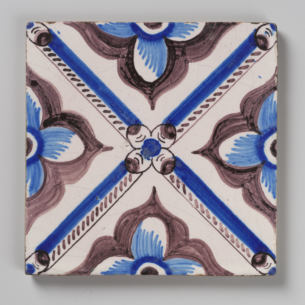 tegel van aardewerk met tinglazuur, voorstellende: h...