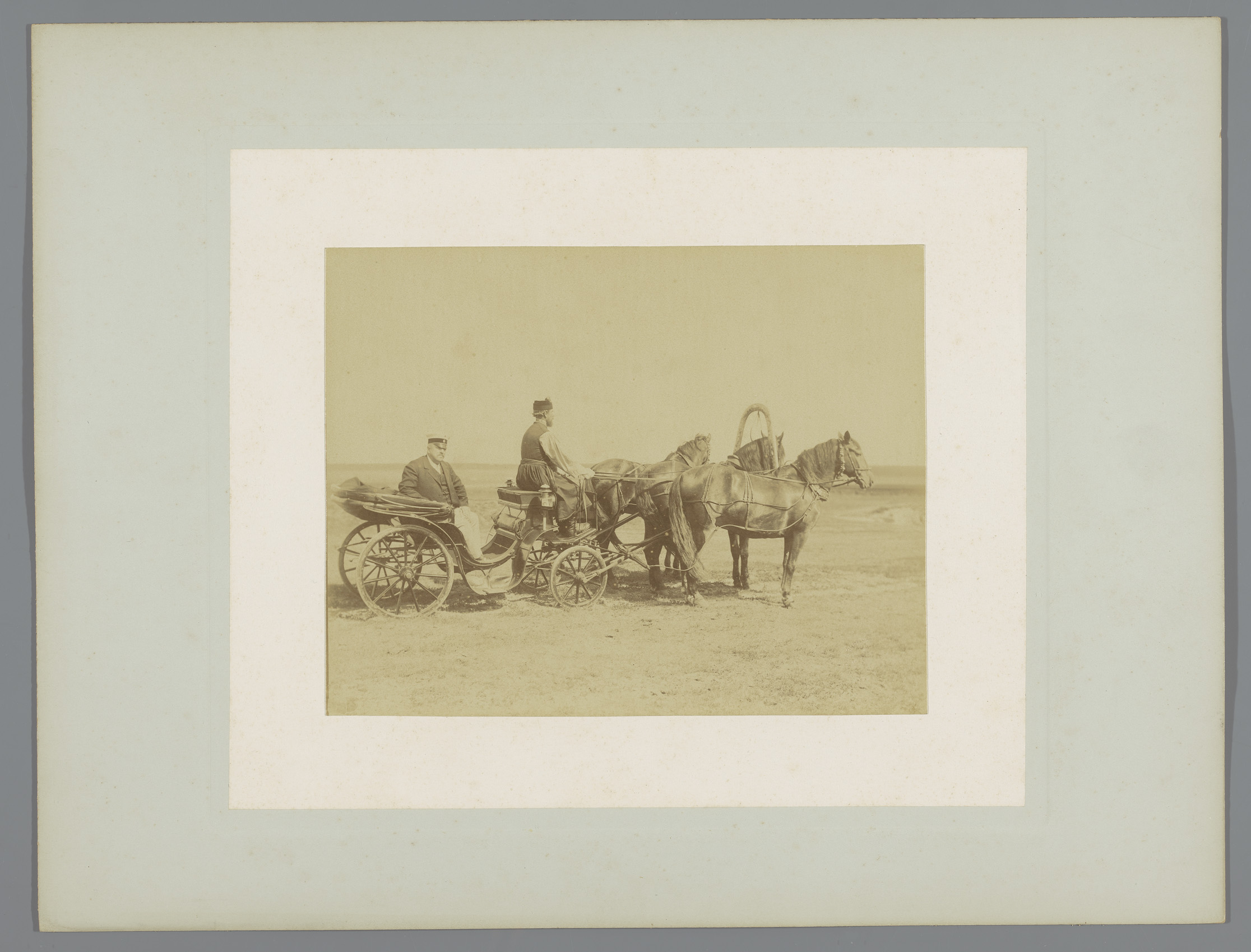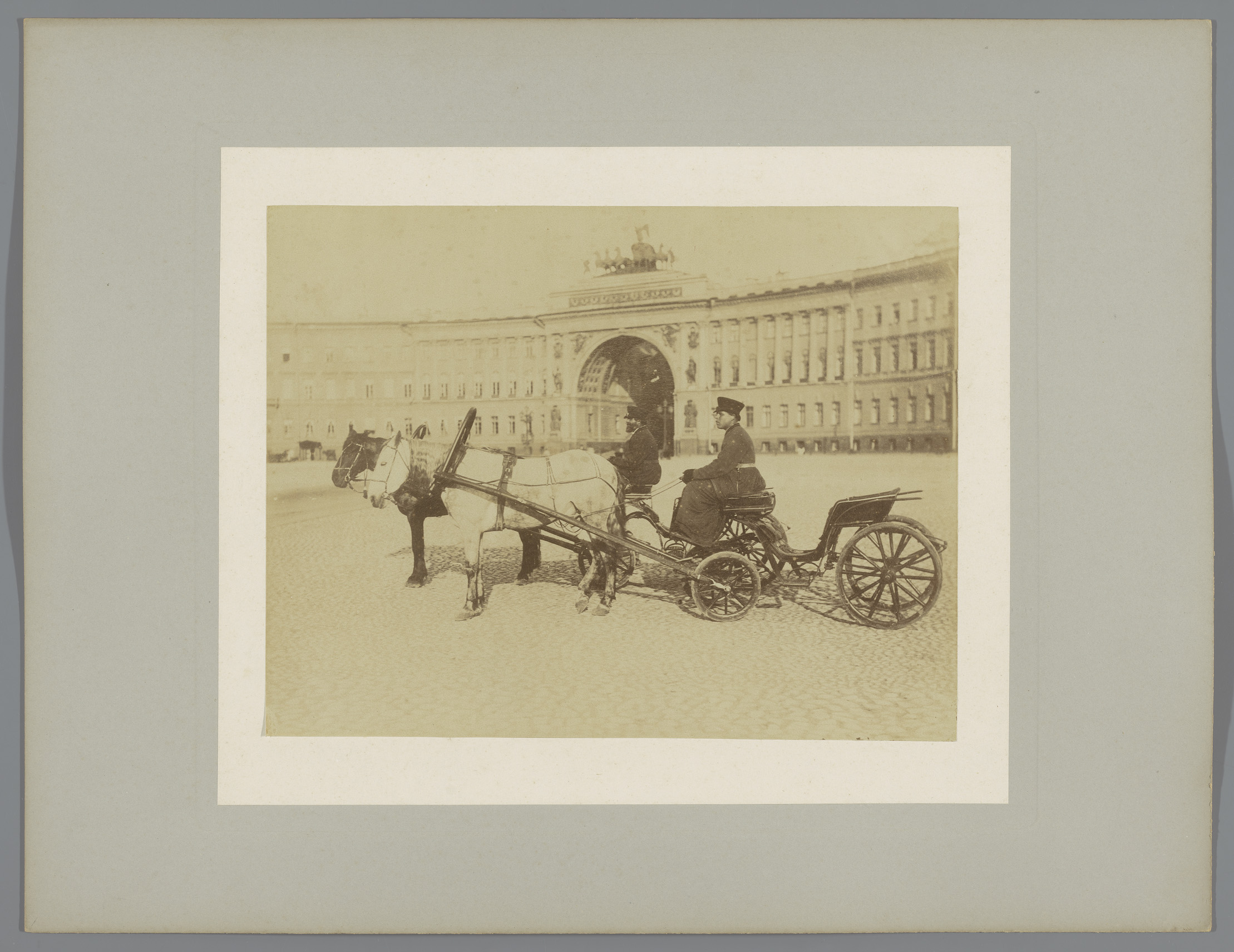 Koetsiers met paard en wagen op het Paleisplein in S...