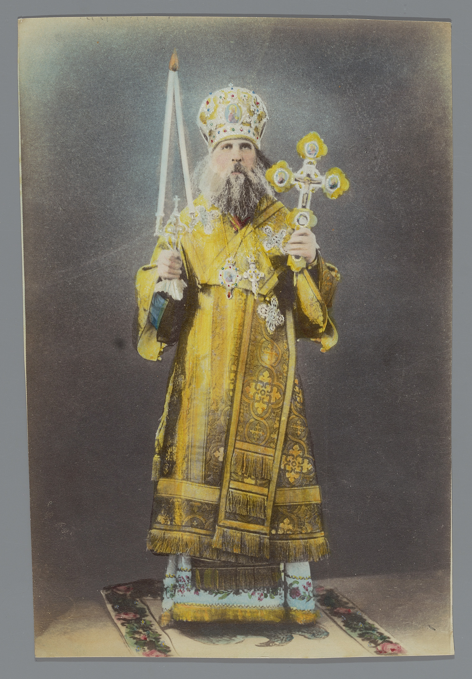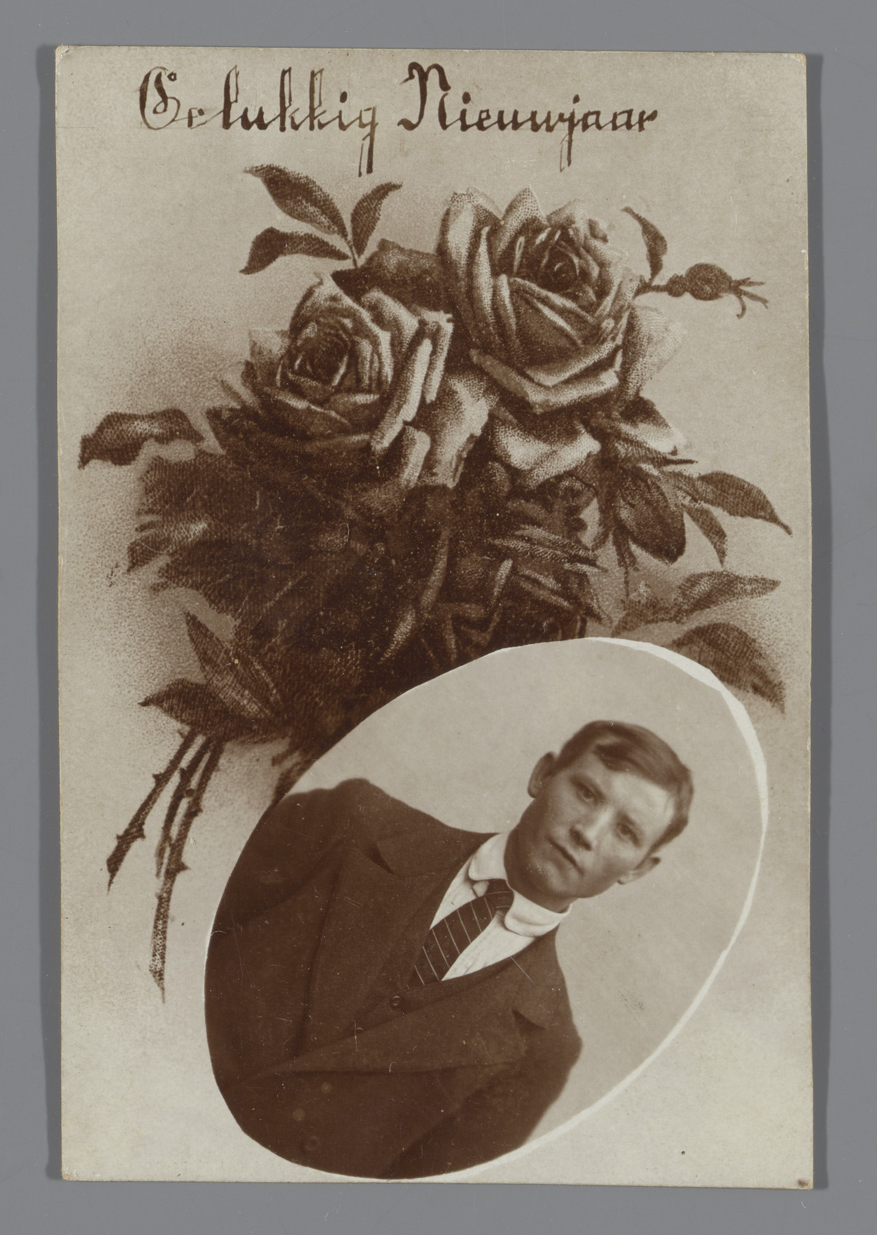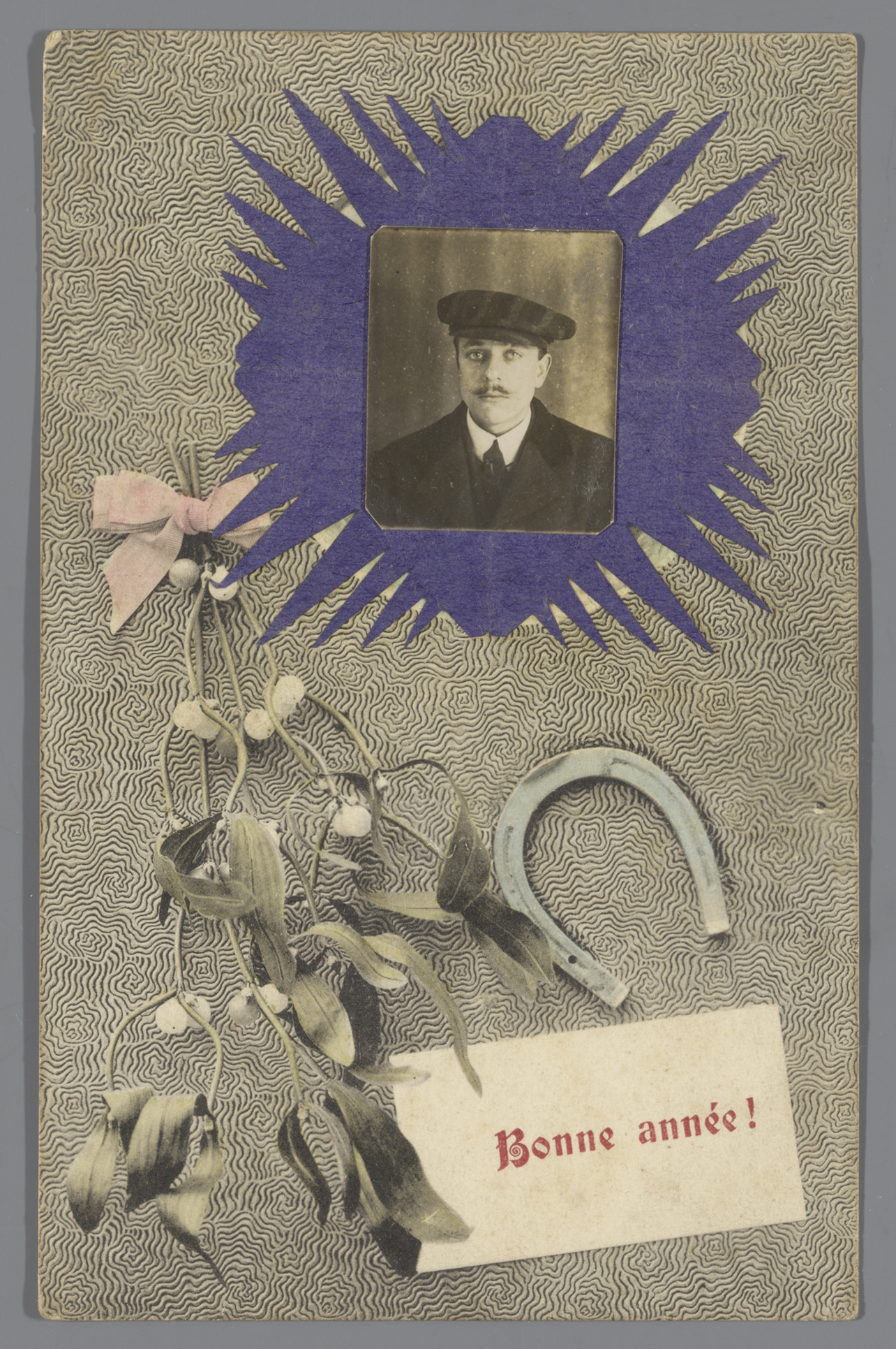 Kerst- en nieuwjaarskaart met portret van een onbeke...