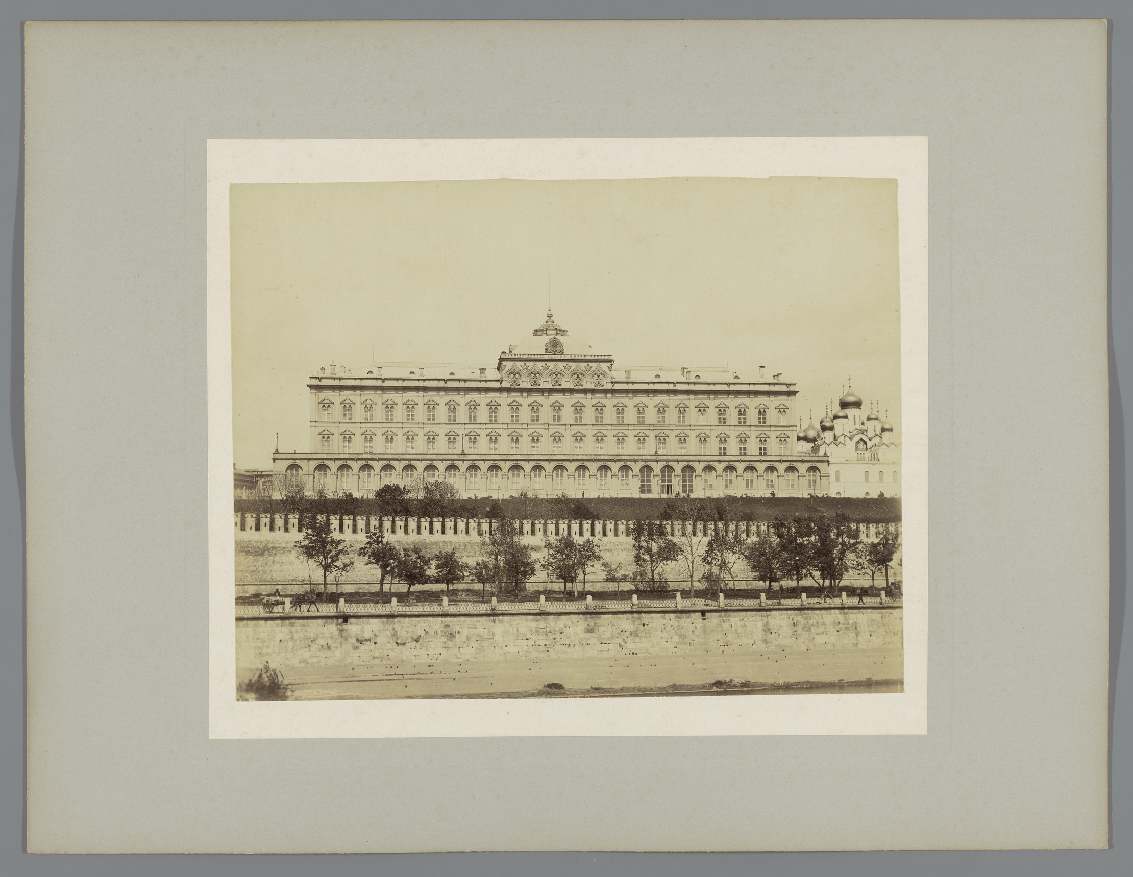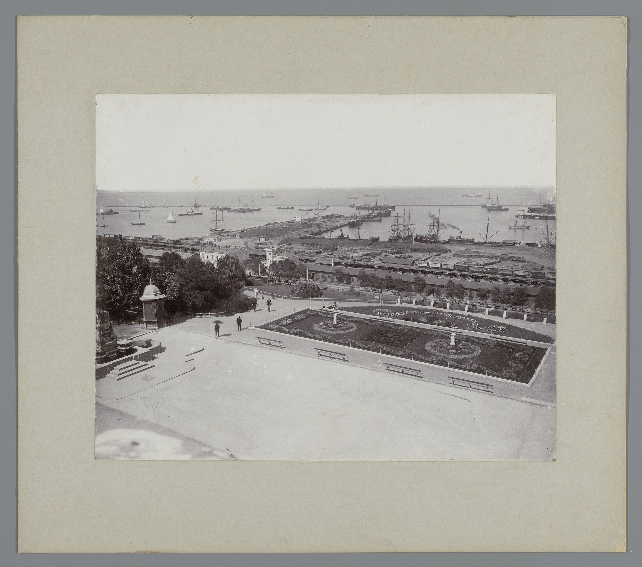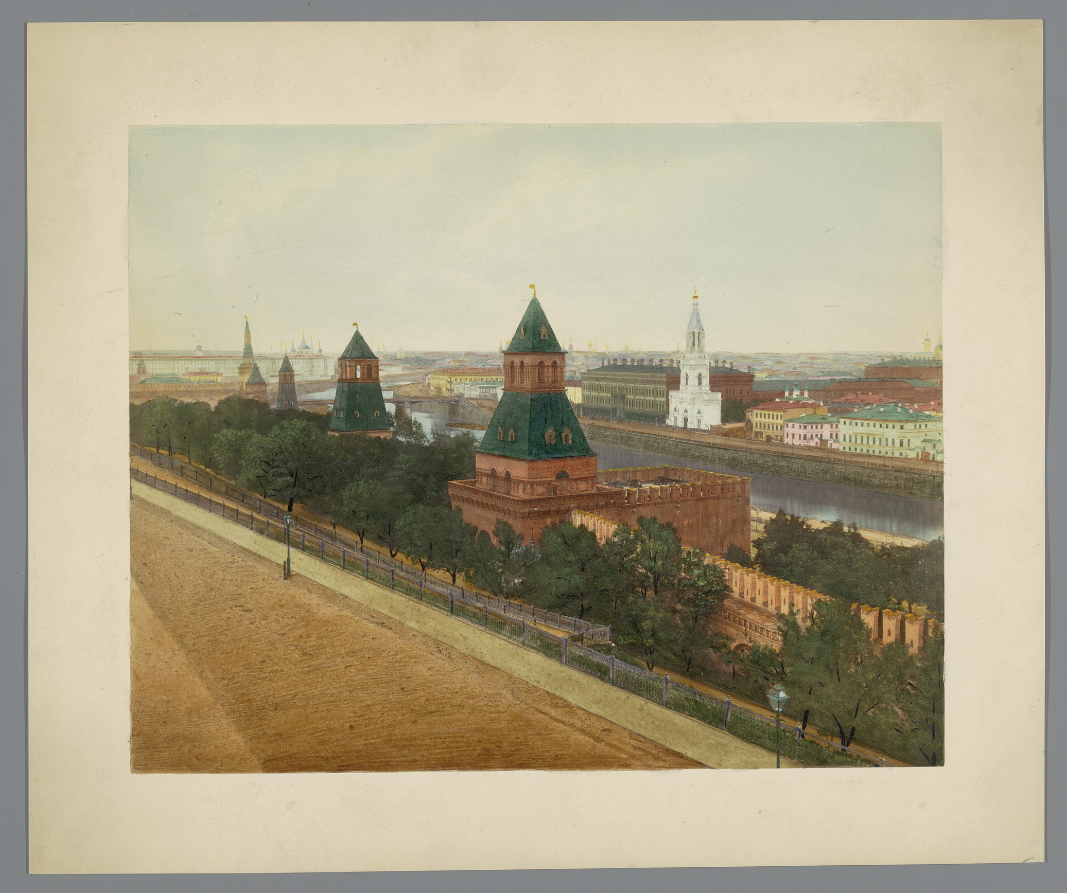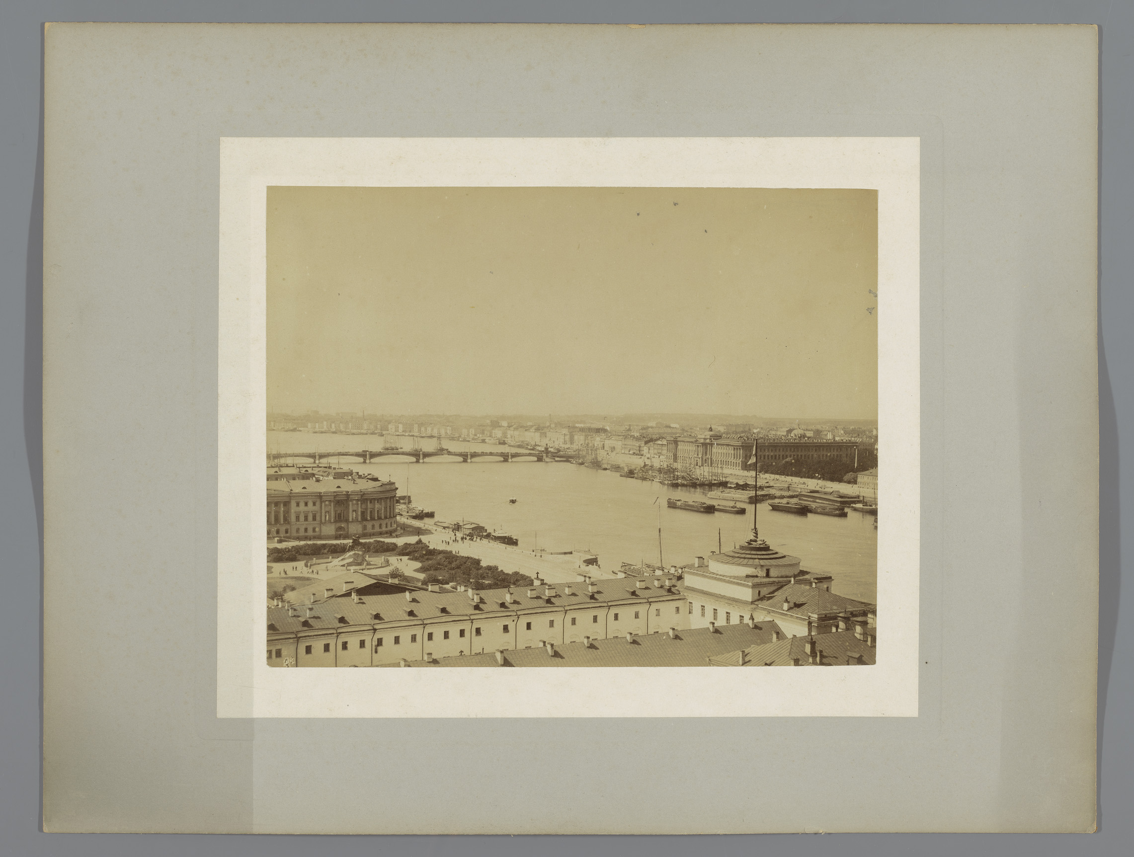 Gebouwen aan een haven in Rusland, mogelijk in Sint-...