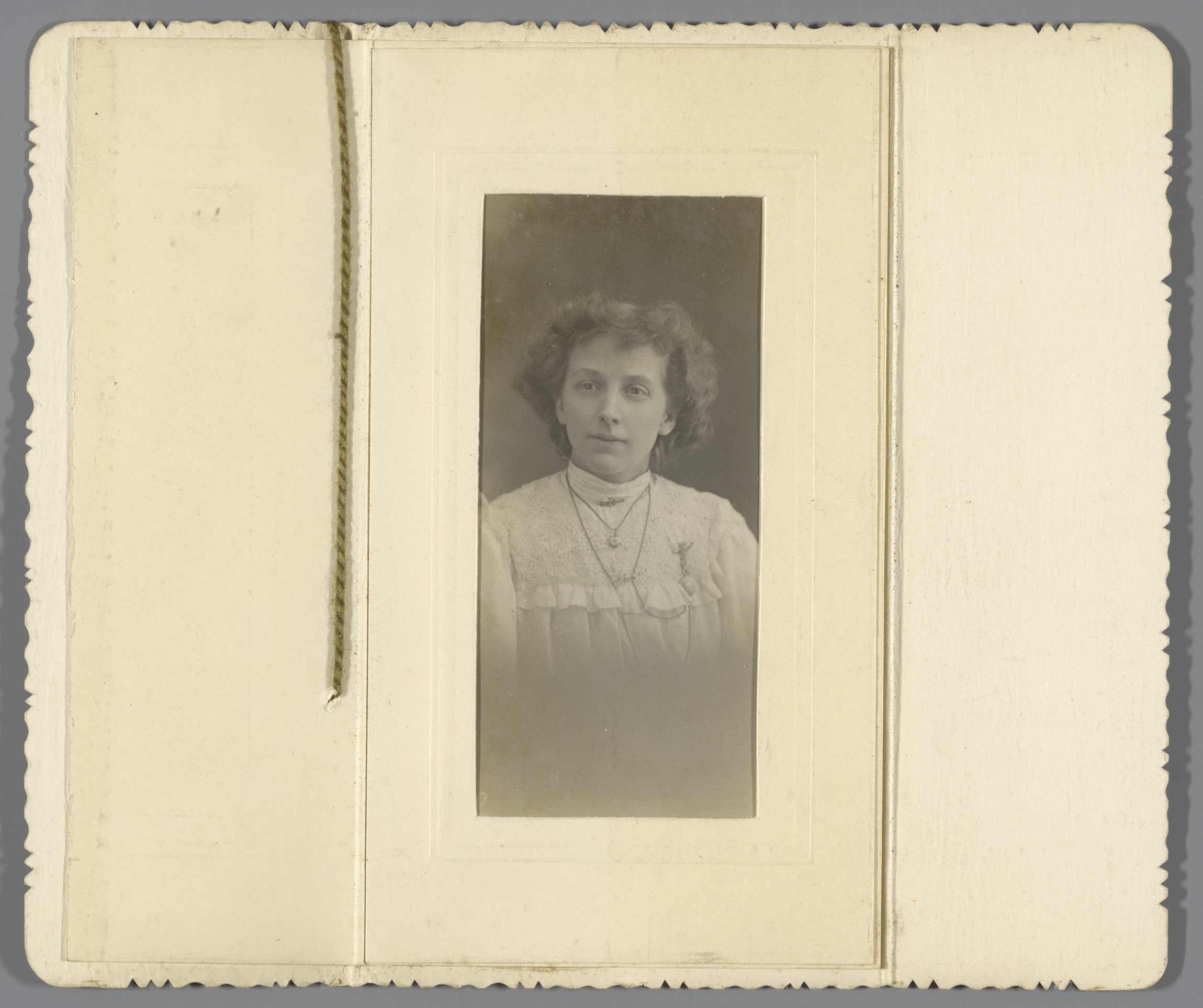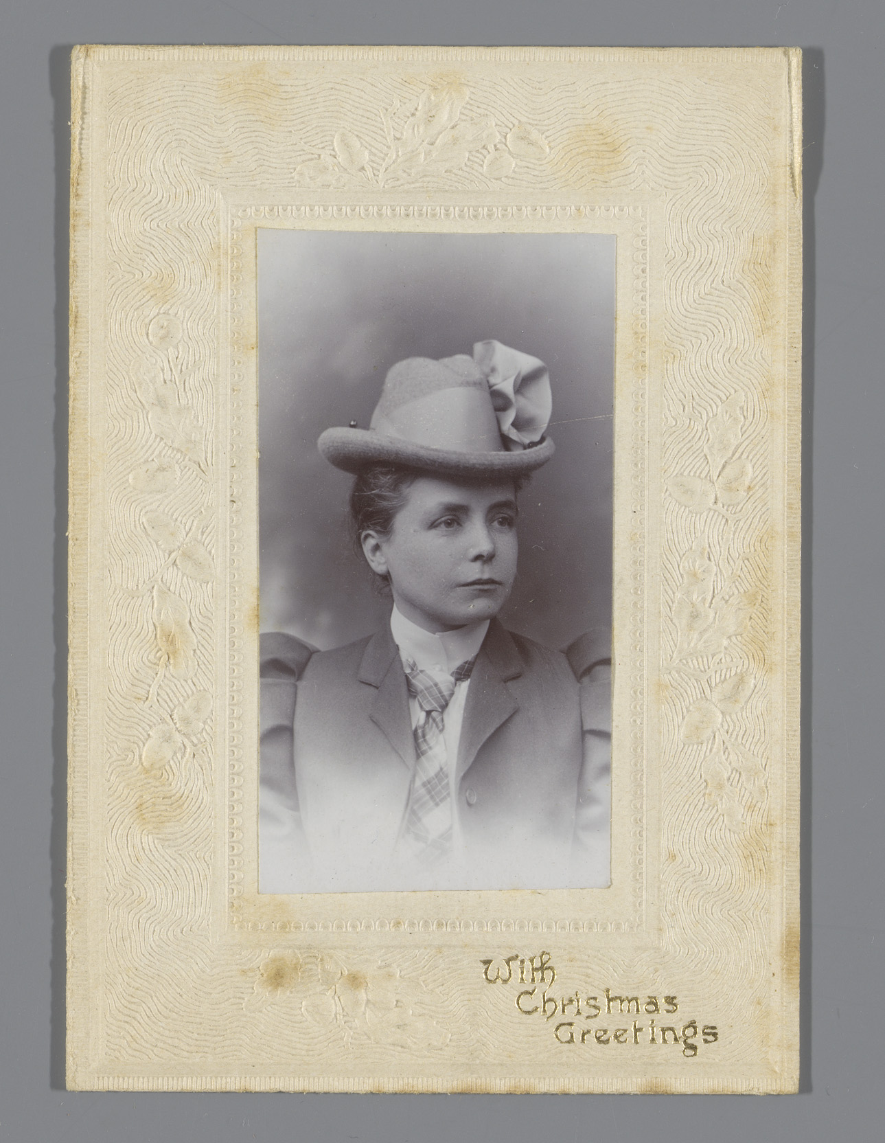 Kerst- en nieuwjaarswens met portret van Marie Studh...