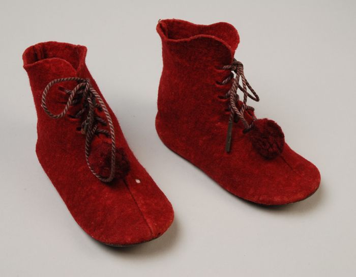 Rode vilten babylaarsjes met wollen pompoentje op de...