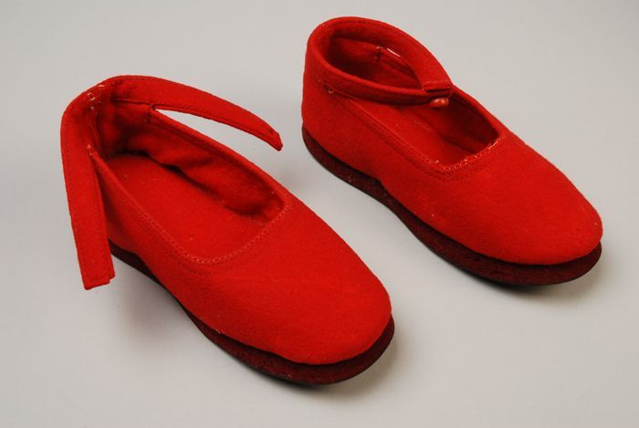 Rode vilten meisjesschoentjes met enkelbandje met kn...