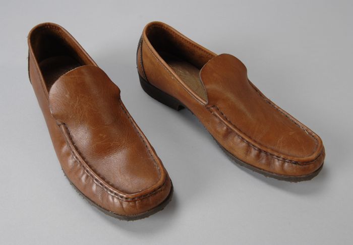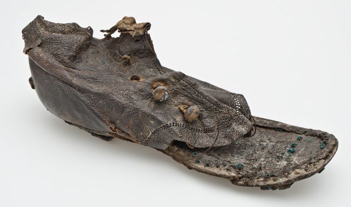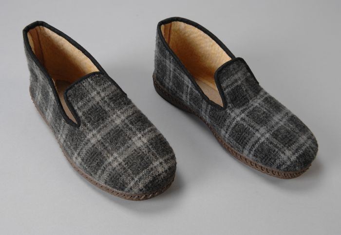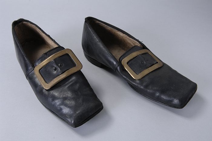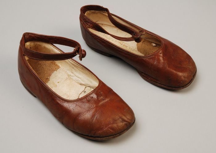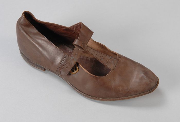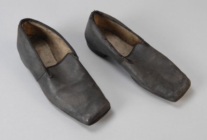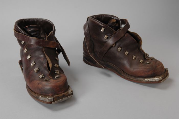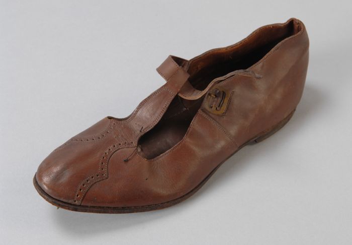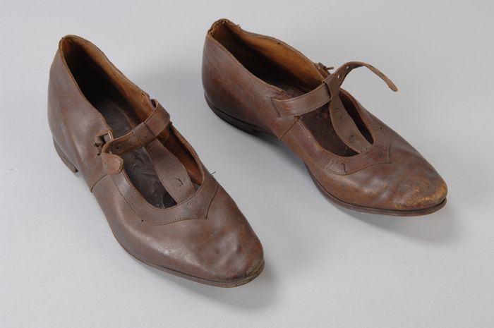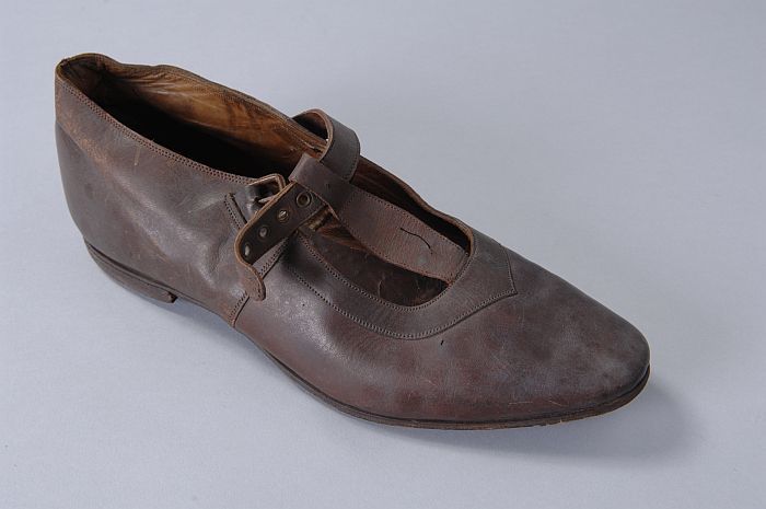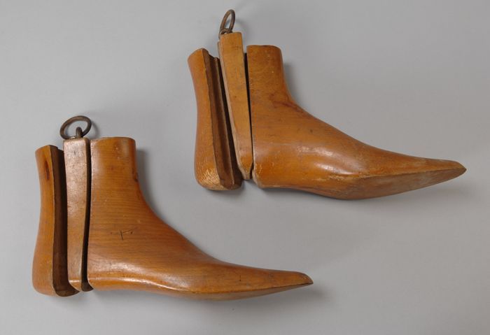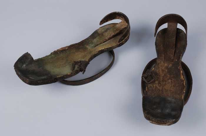 Metalen trippen met houten voetbed, messing hielstuk...