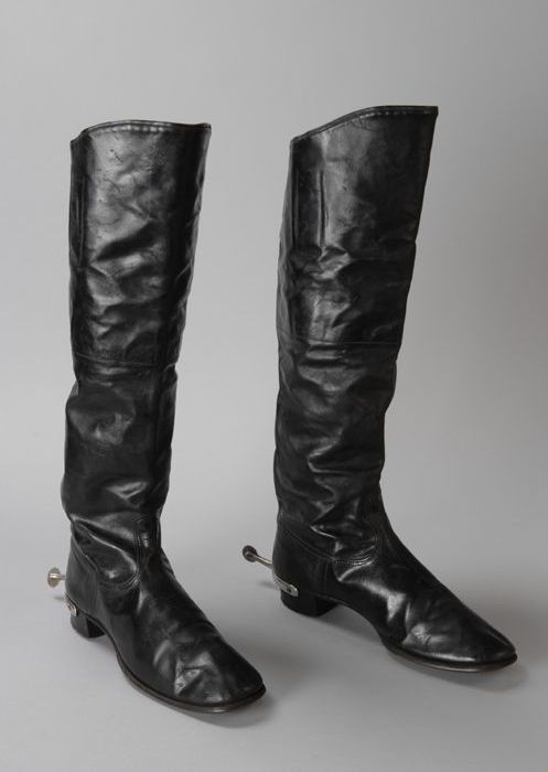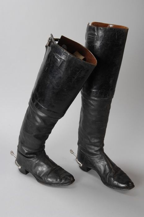 Zwarte leren rijlaarzen met sporen, zeer hoge schacht