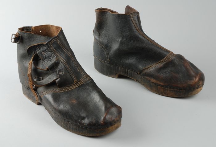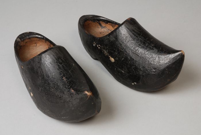 Zwart geverfde houten kinderklompen met hoge wreef e...