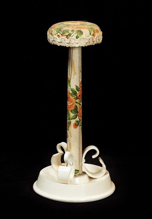 Hoedenstandaard, ronde crèmekleurige voet van hout m...