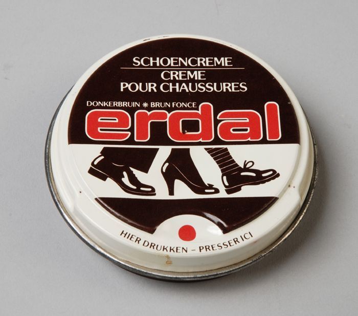 Klein rond blik met los deksel, "Erdal, schoencrème"...