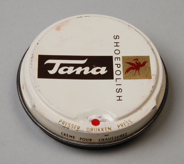 Klein rond blik met los deksel, "Tana, shoepolish", ...