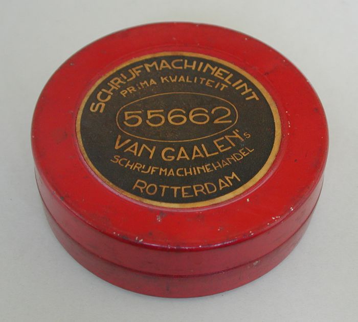 Rond rood blikje schrijfmachinelint "VAN GAALEN's sc...