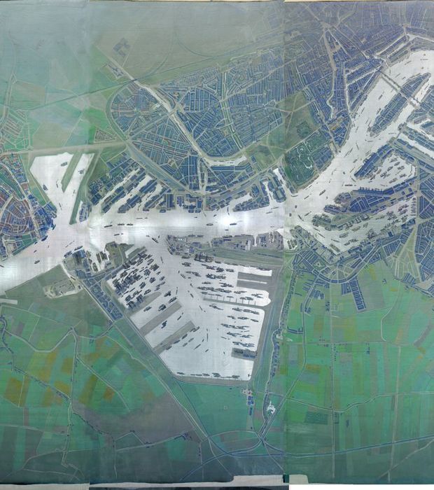 Diorama Nieuwe Waterweg: wandschildering met overzic...