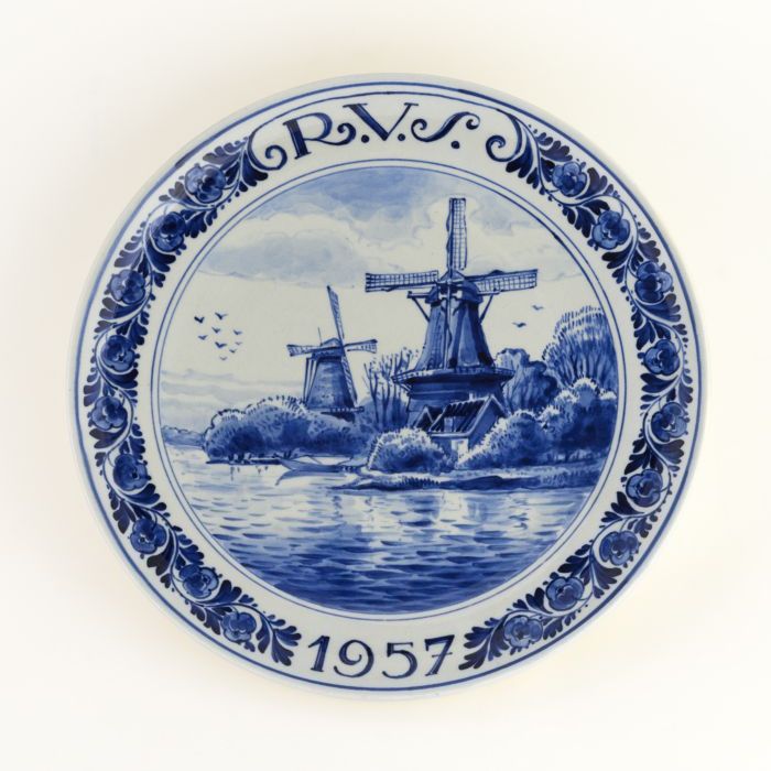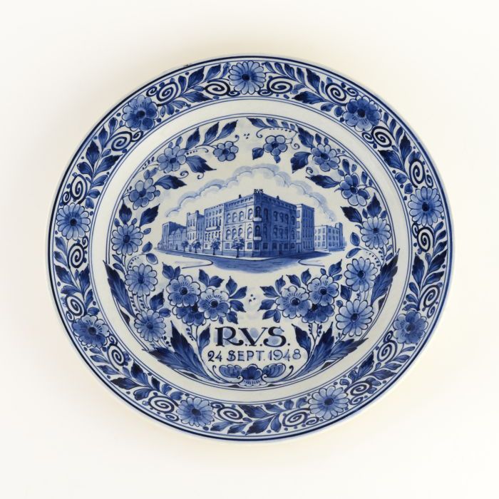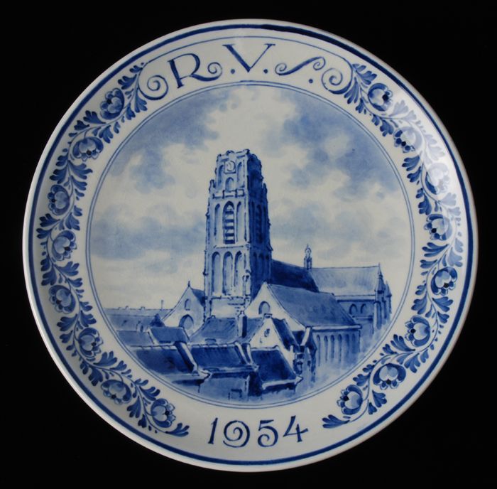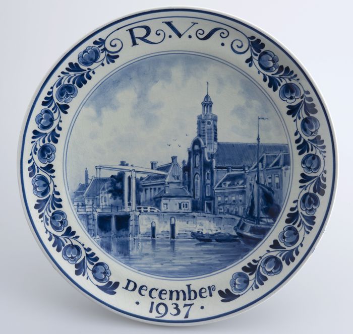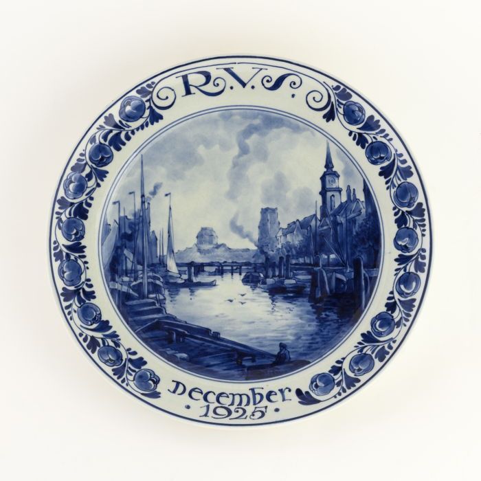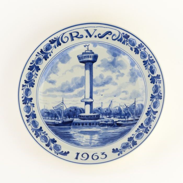 Delfts Schoonhoven wandbordje met blauw wapen Rotter...
