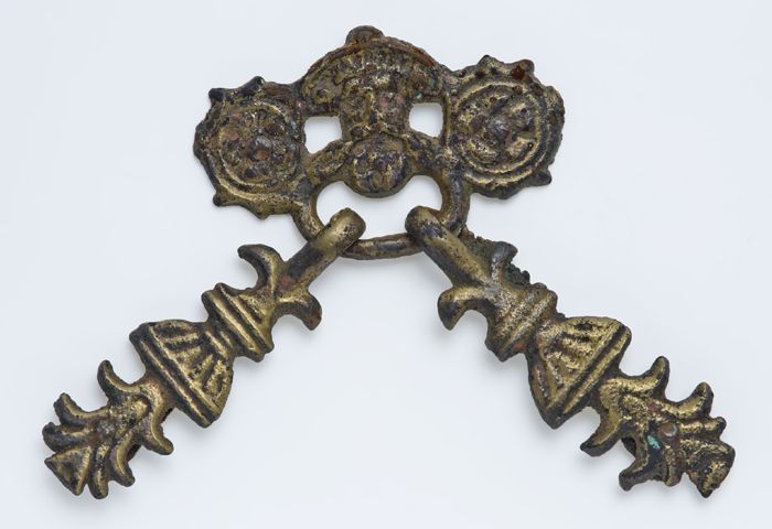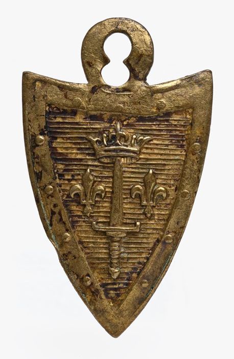 Hoedenstandaard, twee dunne pionvormen van metaaldra...