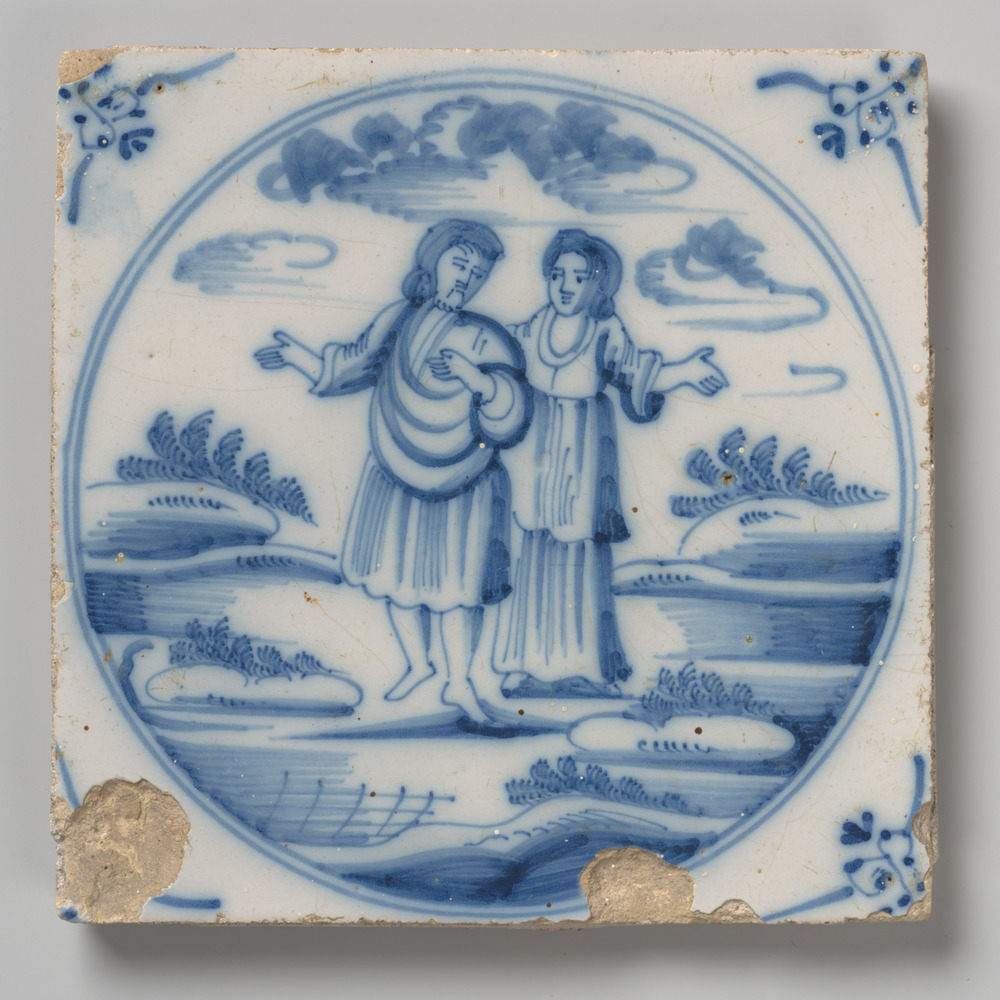 tegel van aardewerk met tinglazuur, voorstellende: P...