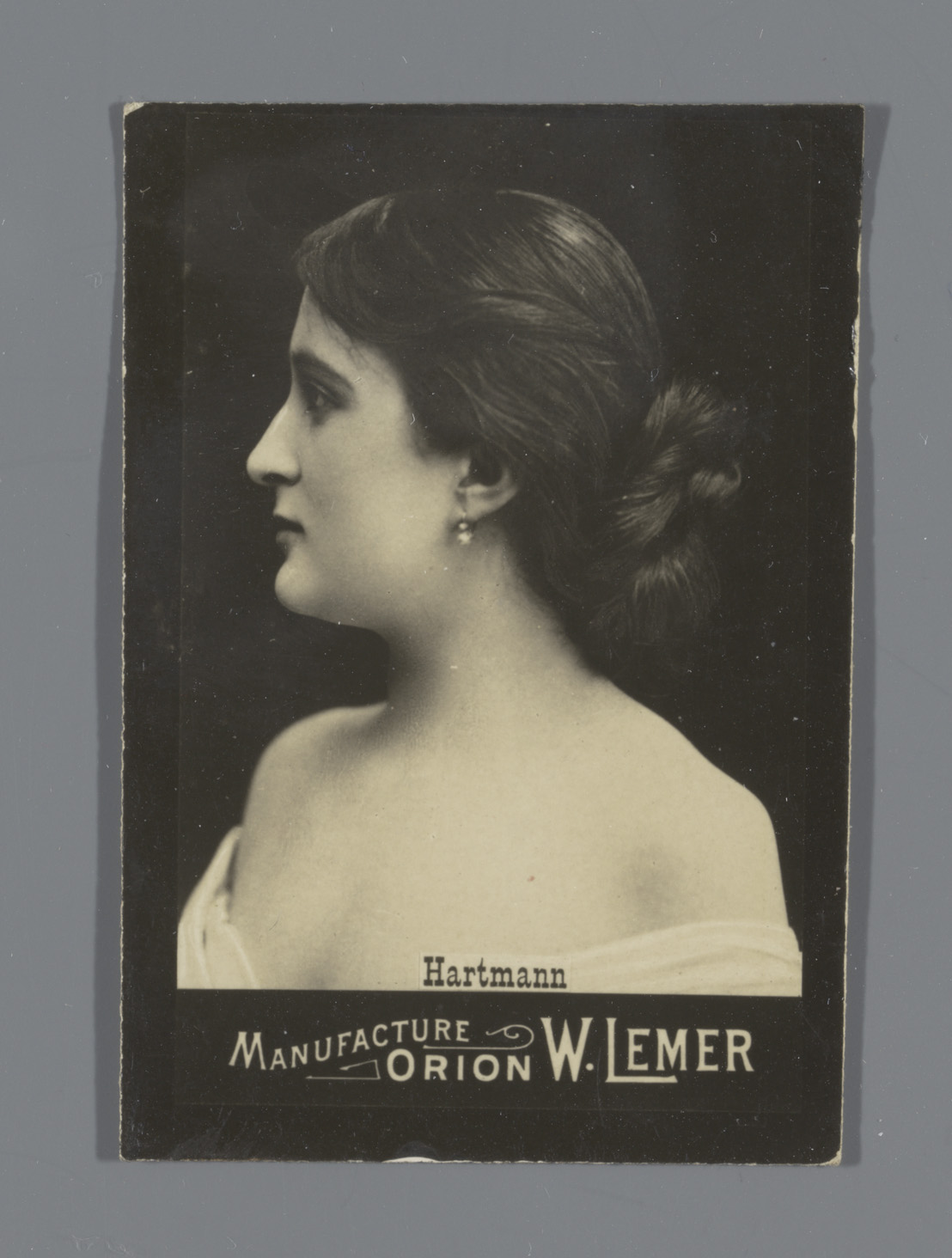 Portret van een vrouw aangeduid als Hartmann, reclam...