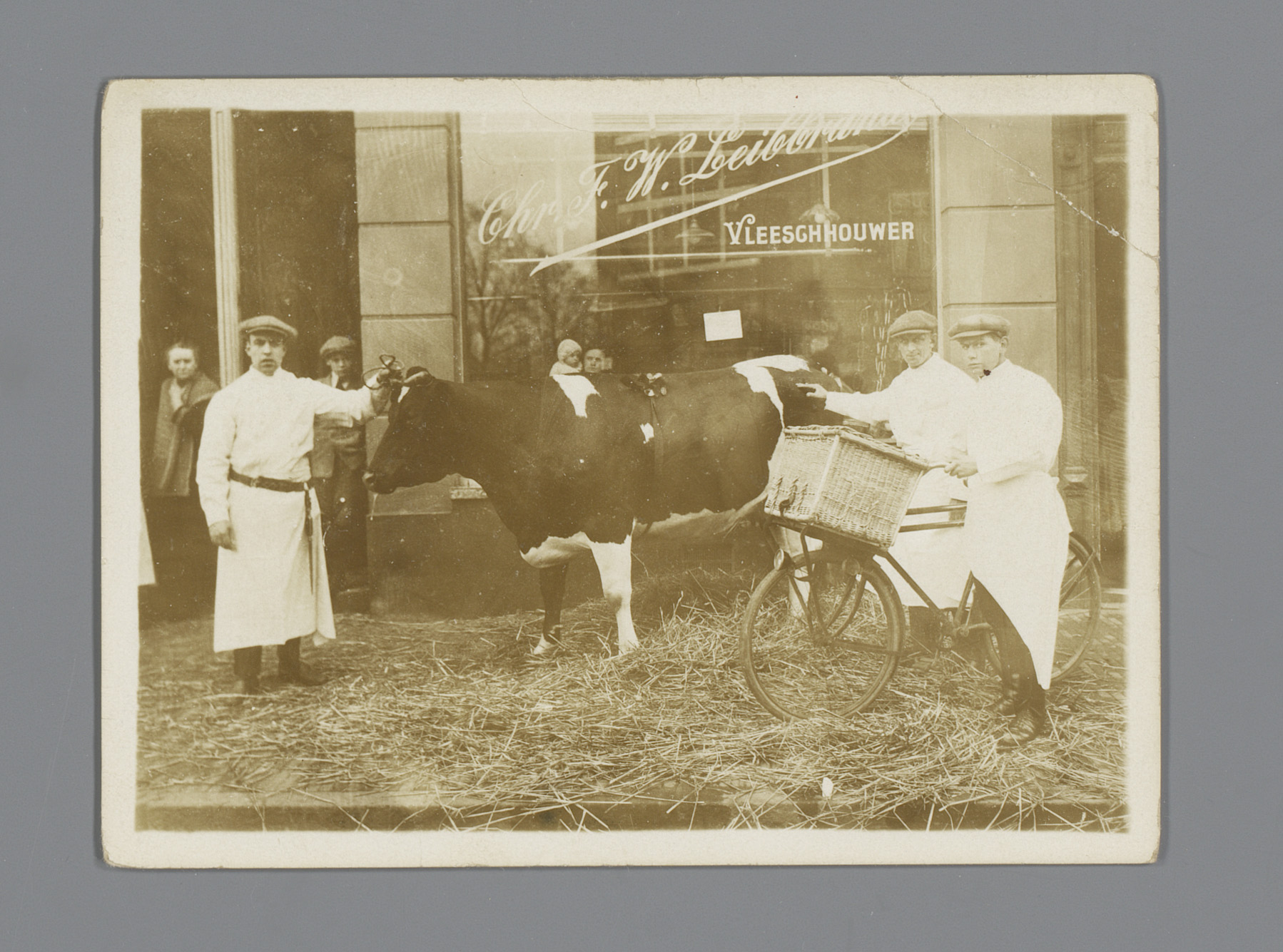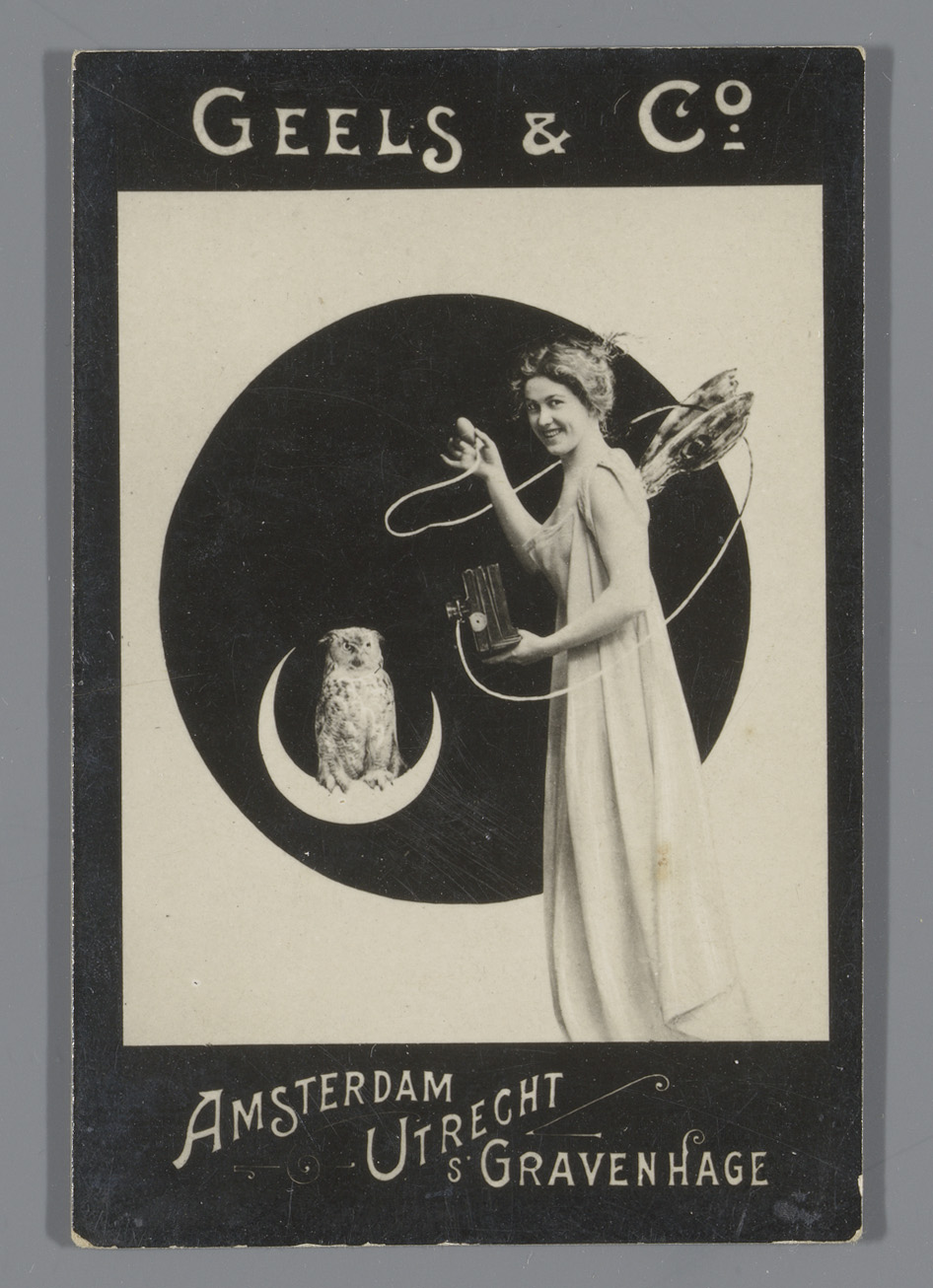 Hond met strik, reclame voor Kahrel's Thee Groningen
