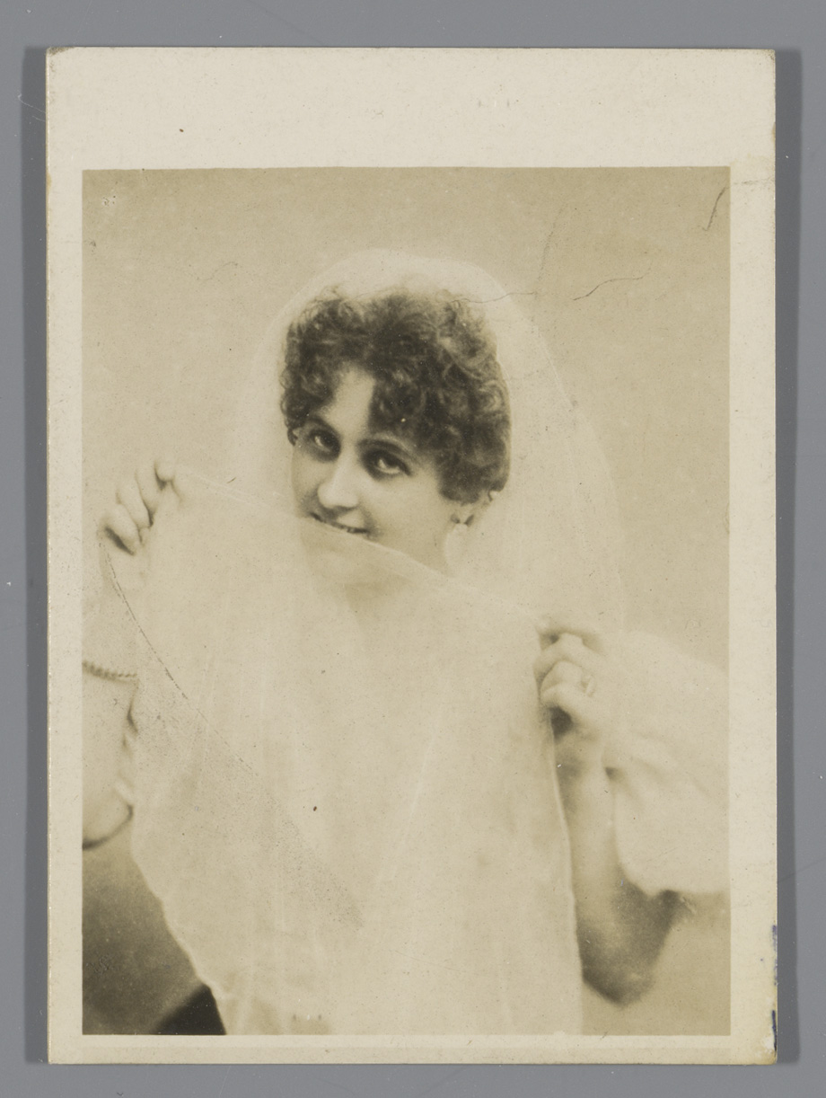 Portret van een onbekende vrouw met sluier, reclame ...