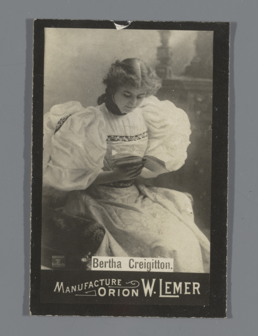 Portret van Bertha Creigitton, reclame voor Orion W....